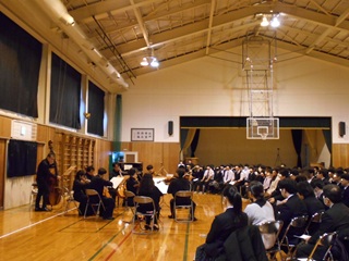 弦楽器の優しい音色で、大きな音が苦手な生徒も楽しんで鑑賞することができました。どの曲も素晴らしかったのですが、特にジブリ名作メドレーでは「素敵で泣きそうになった。」「知っている曲だけど、すごかった。」などの感想が、生徒から上がりました。