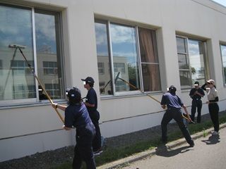 ポールを使った「窓清掃のデモンストレーション」を見ていただき、その後「体験コーナー」を用意しております。生徒が分かりやすく説明や対応をいたしますので、実際に体験し、窓清掃の楽しさを味わっていただきたいです。無料で体験できますので、積極的な御参加をお待ちしております!